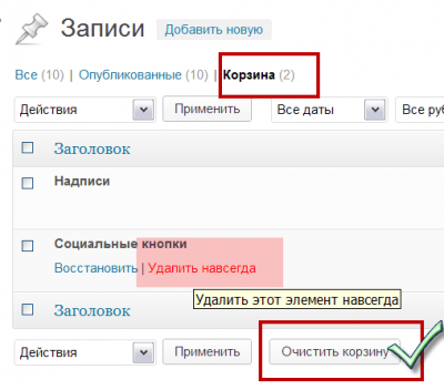 Очистить корзину WordPress полностью