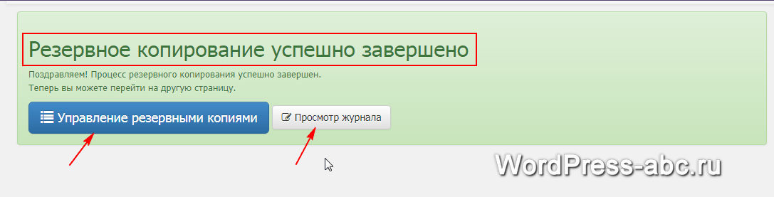 Резервная копия готова. Идем в журнал резервных копий и видим, что новая резервная копия сайта, созданная плагином Akeeba WordPress, готова и ждет восстановления (если нужно).