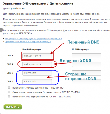 - Первичный и вторичные DNS не обязательно должны находиться на домене, за который отвечают.