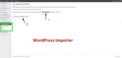 - Открываем плагин WordPress Importer в консоли нового сайта;