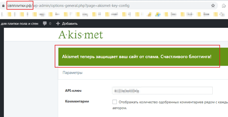 Плагин Acismet (антиспам) и домен РФ
